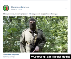 28 июля в соцсети ВКонтакте в группе «Объявления Евпатории» появилось видео, на котором человек в балаклаве, представляясь рядовым 126-й бригады, заявляет, что находится в Херсоне и «обстановка действительно тяжелая».