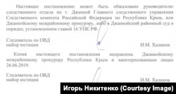 Игорь Никитенко рассказал Крым.Реалии, что после того, как не дождался ответа от правоохранителей на свое заявление, сам отправился в Джанкойский следственный отдел Следкома России.