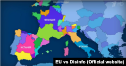Во время референдума «независимости» Каталонии российская государственная пропагандистская машина проталкивала сообщение о том, что Испания находится на грани гражданской войны; что вся Европа разделена сепаратистскими движениями, а риски распада – еще большие. В качестве иллюстрации использовали эту карту дистопичного будущего Европы, где большинство западноевропейских стран «разрезаны» на мелкие части.