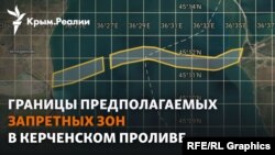 Как сообщил Крым.Реалии источник, располагающий информацией о работе керченских портов и порядке прохода судов по Керченскому проливу, имени которого редакция не называет из соображений безопасности, после определения закрытых для судоходства зон у берегов Крыма и российской Кубани, остается участок для прохода судов шириной чуть более 600 метров.