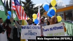В этом ключе рассматривается и недавнее заявление по Украине парламентского комитета по внешним связям и телефонная беседа министра иностранных дел Давида Залкалиани с украинским коллегой. Оппонентам не понравилось, что министр Залкалиани не спешит присоединяться к министрам иностранных дел Балтийских республик, которые собираются для поддержки посетить Киев. Для проявления более наглядной поддержки Украине оппозиция и активисты 12 апреля в Тбилиси перед посольством Украины организовали акцию солидарности «Руки прочь от Украины и Грузии!»