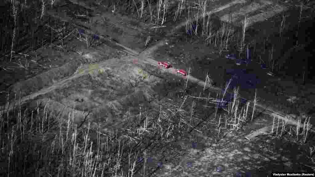Корреспондент Радіо Свобода заснял с воздуха последствия взрывов боеприпасов на военных складах вблизи города Калиновка Винницкой области.
