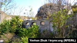 Спускаюсь в Килен-балку. Первое, что попадается на глаза – заброшенный, разрушенный, разграбленный военный городок, откуда военные ушли еще в 1990-е. Некоторые строения здесь – начала прошлого века, как это, которое на фото. Шифер с крыши растащен, балки и стропила увезены на дрова, все вокруг – в поросли уксусного дерева. Но стены пока стоят, держатся под натиском природы.