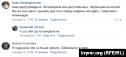 В сообществе «Подслушано Ялта» соцсети «Вконтакте» анонимный пользователь описывает реальную «эффективность» российских спецслужб: «Как-то все очень подозрительно. В Крыму постоянно демонстративно по всем каналам публиковали видео, новости, что так доблестно ловят «диванных интернет-героев», диверсантов, террористов и преступников, которые что-то там планировали. При том вспомните, почти все сюжеты о том, что поймали, устранили таких-то преступников, злобно планировавших то-то и это. В квартирах чаще всего сразу находили и паспорта и деньги и орудия планирующихся преступлений. (Это насколько же тупыми были преступники). Тем самым создавалось общественное мнение – как все в Крыму безопасно и хорошо, и как оперативно ловятся преступники еще на этапе их планов. Потом везде в новостях сообщается, что Крымский мост – это чуть ли не крепость, безопасность которой ну просто сверх крутая, что там даже мышь не проползет, не то чтобы преступники или какие-то диверсанты. Куча навороченных защит, проверок и т.д. И тут просыпаешься такой утром, а в новостях, что взорвался грузовик на Крымском мосту. Судя по видео, не слабо так взорвался. Как такое могло произойти, с такой супер-пупер защитой моста, с супер-пупер силовиками, которые работали всегда на опережение? Что-то очень подозрительно в этой ситуации...»