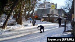 В Симферополе коммунальщики тоже несколько дней чистят снег. Глава российской администрации города Валентин Демидов утверждает, что на это брошены сотни коммунальщиков и десяток комбинированных дорожных машин, которые работают круглосуточно.