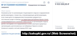 По информации российского портала госзакупок, обеспечить услуги по этим путевкам обязался крымский Специализированный спинальный санаторий имени Бурденко, расположенный в Саках на берегу соленого лечебного озера.