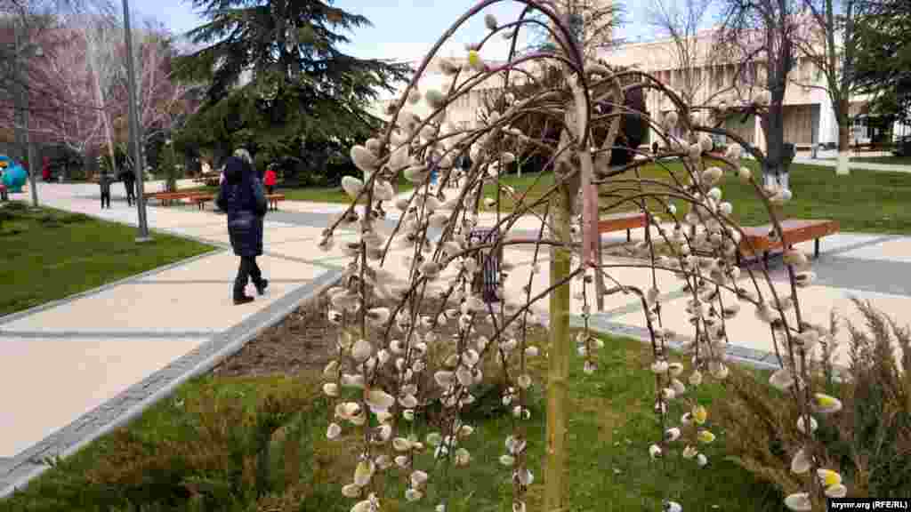 Зацвела штамбовая ива перед Дворцом культуры профсоюзов в Симферополе | Крымское фото дня