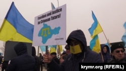 Возле контрольного пункта въезда-выезда «Чонгар» на административной границе с Крымом проходит акция против проведения российских выборов на полуострове, сообщает корреспондент Крым.Реалии.