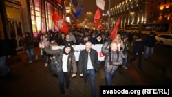 В Минске накануне парламентских выборов прошла акция протеста оппозиции. Представители гражданской кампании "Европейская Беларусь" и незарегистрированной партии "Народная грамада" вечером 16 ноября провели совместный митинг на площади Свободы в Минске. После этого участники акции направились в сторону Центризбиркома Беларуси, сообщает "Настоящее время".