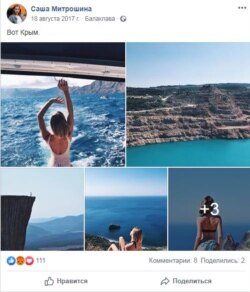 Митрошина в 2017 году разместила в Фейсбуке пост о своей поездке в аннексированный Крым.