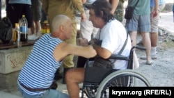 Как сообщает корреспондент Крым.Реалии, мероприятие проходило у памятного знака бойцам ВДВ в сквере на улице Садовой. После митинга состоялось возложение цветов к памятному знаку.