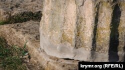 Вход на территорию античного городища перекрыт оградительной лентой. Колонны заметно наклонились, у их основания видна небольшая трещина, сообщает корреспондент Крым.Реалии.