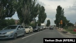 Сегодня в 15:00 на автодороге Саки – Евпатории образовалась пробка длиной около семи километров. Об этом сообщает корреспондент Крым.Реалии.