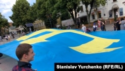 Как сообщает корреспондент Крым.Реалии, к акции, которая прошла на Европейской площади, присоединилось несколько десятков людей.