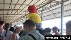 На административной границе Херсонской области с Крымом на пункте пропуска «Чонгар» днем 21 августа образовалась очередь из более пятисот человек. Как сообщает корреспондент Крым.Реалии, люди стояли в очереди к паспортному контролю в сторону Крыма около трех часов из-за того, что на паспортном контроле работало всего одно окно.