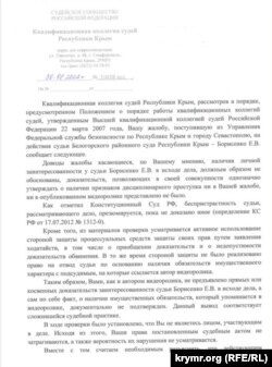 Подконтрольная Москве Квалификационная коллегия судей Крыма провела проверку действий судьи российского Белогорского районного суда – Евгения Борисенко, вынесшего обвинительный приговор директору парка львов «Тайган» Олегу Зубкову. Сообщается в письме коллегии, которое есть в распоряжении Крым.Реалии.