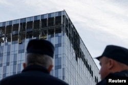 Поврежденное из-за удара беспилотника здание в Москве, 24 июля 2023 года