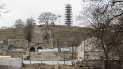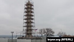 В Керчи на вершине горы Митридат начали работы по ремонту обелиска Славы. Как сообщает корреспондент Крым.Реалии, вокруг каменного 24-метрового обелиска возвели строительные леса.