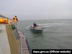 «Тактическая группа катеров Мариупольского отряда Морской охраны, которая несла службу в данном районе, обнаружила корабли БУ ПС ФСБ России, от которых в сторону украинского берега направлялось малое плавсредство... По результатам осмотра и проверки документов, было установлено, что это тоже самое плавсредство и те же четверо граждан Украины, которые в нарушение действующего законодательства вышли в море», – рассказали пограничники.