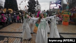Как сообщает корреспондент Крым.Реалии, керчан развлекали песнями, танцами, колядками и рождественскими гаданиями. На площади продолжал работать вертеп, установленный здесь в канун Рождества.