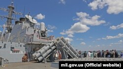 Участникам торжественных мероприятий по случаю открытия активной фазы многонациональных учений «Си Бриз–2016» показали эсминец ВМС США «Росс». Их ознакомили с организацией службы, вооружением и оснащением корабля. Об этом сообщает пресс-служба Министерства обороны Украины.