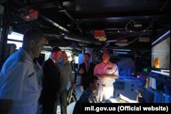 На борту корабля, в частности, побывали вице-премьер-министр по вопросам европейской и евроатлантической интеграции Украины Иванна Климпуш-Цинцадзе, Министр обороны Украины Степан Полторак, Министр обороны Республики Молдова Анатолие Шалару.