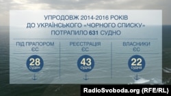 По данным Государственной гидрографической службы Украины, Министерства инфраструктуры Украины, а также общественной организации «Майдан иностранных дел» и Министерства инфраструктуры Украины, по состоянию на август 2016 года, 631 судно было зафиксировано в портах оккупированной Автономной Республики Крым и города Севастополя. (Речь идет про все разновидности судов, по которым есть информация, кроме военных и вспомогательных; как о том, что уже находились в портах на время аннексии, так и о том, что заходили в порты после нее).
