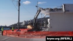 На набережной Ялты 2 ноября комплекс «Еда» начали сносить тяжелой техникой при участии чиновников и молодежного крыла «Единой России». Об этом сообщает корреспондент Крым.Реалии.