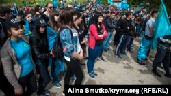 На Ангарском перевале в Крыму, 13 мая, в память о жертвах депортации крымских татар жители полуострова поднялись на одну из самых высоких гор Крыма – Чатыр-Даг.