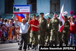 В Симферополе прошло первомайское шествие, в котором приняли участие, по данным российской администрации города, более 25 тысяч человек. Среди них – крымские чиновники, депутаты, руководство города, члены профсоюзов и работники различных организаций.