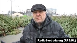 «Самая дешевая елка у нас стоит 250 рублей (около 105 гривен ‒ ред.). А такую можно за 900 (около 380 гривен ‒ ред.) забрать. Она шикарная», ‒ показывает новогодние деревья продавец.