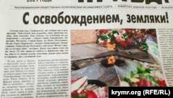 «Крымская правда» в статье под заголовком «С освобождением, земляки!» рассказывает о 77-ой годовщине освобождения Симферополя. «Сегодня твой день, Симферополь, две семерки уже в дате, праздник. Твой второй День рождения, наша крымская столица, День спасения, День свободы. Ты отмечаешь его одновременно с соседями – Сарабуз (ныне Гвардейское), Евпатория, Феодосия, Старый Крым, Ак-Шейх (Раздольное), Ислам-Терек (Кировское), Джурчи (Первомайское), Владиславовка, Карасубазар (Белогорск), еще почти 700 мест (многие из которых ныне – история). Какое счастливое стало для вас число 13! Оно принесло свободу от фашистов, мир, что вы, вместе со своими детьми, жителями, ждали здесь долгих и страшных два с половиной года», – пишет газета.