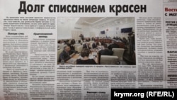 «Крымская правда» в статье «Долг списанием красен» пишет об итогах прошедшего заседания российского правительства Крыма. «В частности, стало известно, как руководство Крыма поступит со старыми украинскими облигациями, сколько денег принесет приватизация «Крымтелекома», когда приведут в порядок набережную реки Салгир и проведут канализацию в симферопольский район Старого города», – отмечает газета. По информации издания, «более полумиллиарда рублей государственного внешнего долга Крыма по облигациям, выпущенным в украинские времена, было решено списать. Речь идет о бумагах внутреннего местного займа, выпущенных в 2011 году». Также определенная конкретика появилась и в вопросе приватизации предприятия «Крымтелеком». Стало известно, что «власти республики планируют выручить от этой продажи как минимум один миллиард рублей». Огромный блок вопросов касался функционирования и развития Симферополя. В частности, подконтрольный Москве глава Крыма Сергей Аксенов озвучил новость о том, что правительство закупит для Симферополя еще сто автобусов марки «ЛиАЗ».