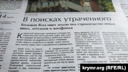 «Крымская газета» в публикации «В поисках утраченного» сообщает о том, что Ялта ищет свободные площади под строительство шести детских садов, трех школ и порядка 10 многоэтажных домов для переселения горожан из аварийного жилья. Чтобы закрыть потребности города, нужно обеспечить тысячу новых мест в дошкольных учреждениях.