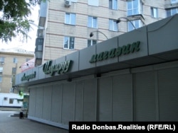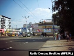 Бывший продуктовый магазин «Риск». В мирное время возле него стояли столы с зонтиками – там было кафе, где отдыхали дончане.