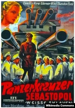 Нацистский "Потемкин" действительно был создан. Он вышел в прокат в 1937 году. Снял его режиссер Карл Антон. Фильм назывался "Броненосец "Севастополь" с подзаголовком "Белые рабы" (под таким названием картина показывалась в США). Даже его рекламный плакат напоминал постеры "Потемкина". Это был как бы "Потемкин" наоборот.