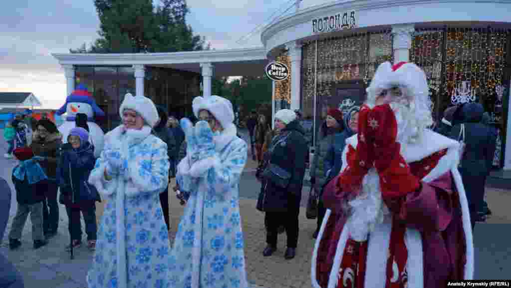 Приморский город-курорт в эти дни, как и весь Крым, в новогодне-рождественских приготовлениях. Но вот погода этому явно не способствует: на смену солнечным дням в Алушту неожиданно пришли дождливые, с мокрым снегом или штормовым предупреждением. Оттого, наверное, на уличных торжествах в городе не собирается много людей.