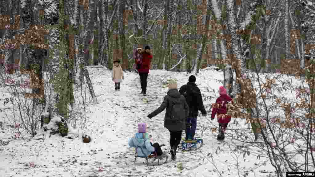 С первым выпавшим снегом крымчане устремляются в родные горы. Конечно же, с санками, снегокатами, «ватрушками» и прочим инвентарем для активного времяпрепровождения на свежем воздухе.