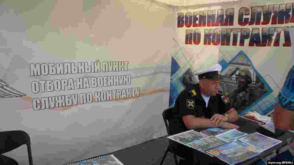26 июля в акватории Севастопольской бухты прошел парад по случаю Дня военно-морского флота России. После парада на площади Нахимова устроили выставку вооружения и агитировали к службе в армии соседней России.