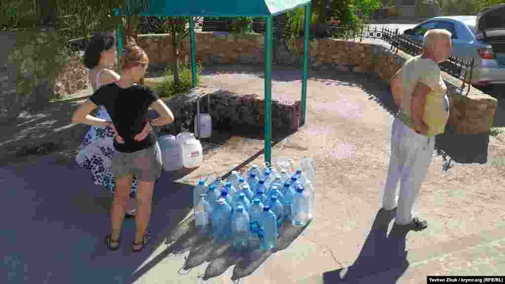 Люди набирают воду из артезианской скважины \в селе Верхнесадовое, которое расположено в Бельбекской долине на Северной стороне Севастополя. Сейчас в Верхнесадовом проживает около 2300 человек, занятых, в основном, в сельском хозяйстве – в садоводстве и виноградарстве.