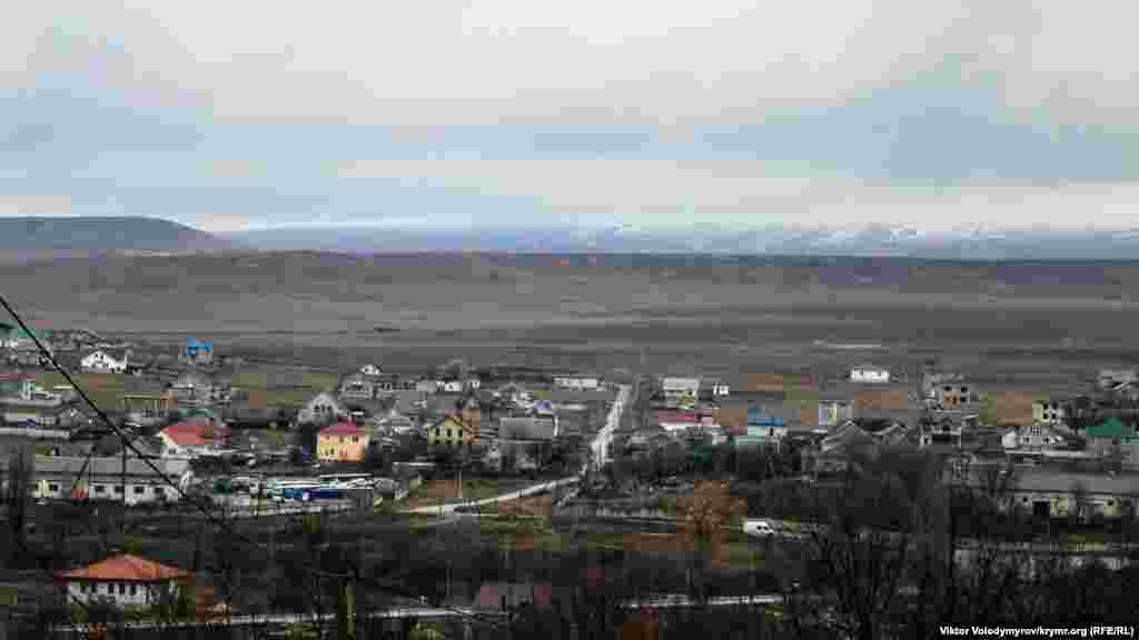 Поднявшись выше, недалеко от села Краснолесья, можно увидеть живописные пейзажи Крымских гор. В это время года они в снегу