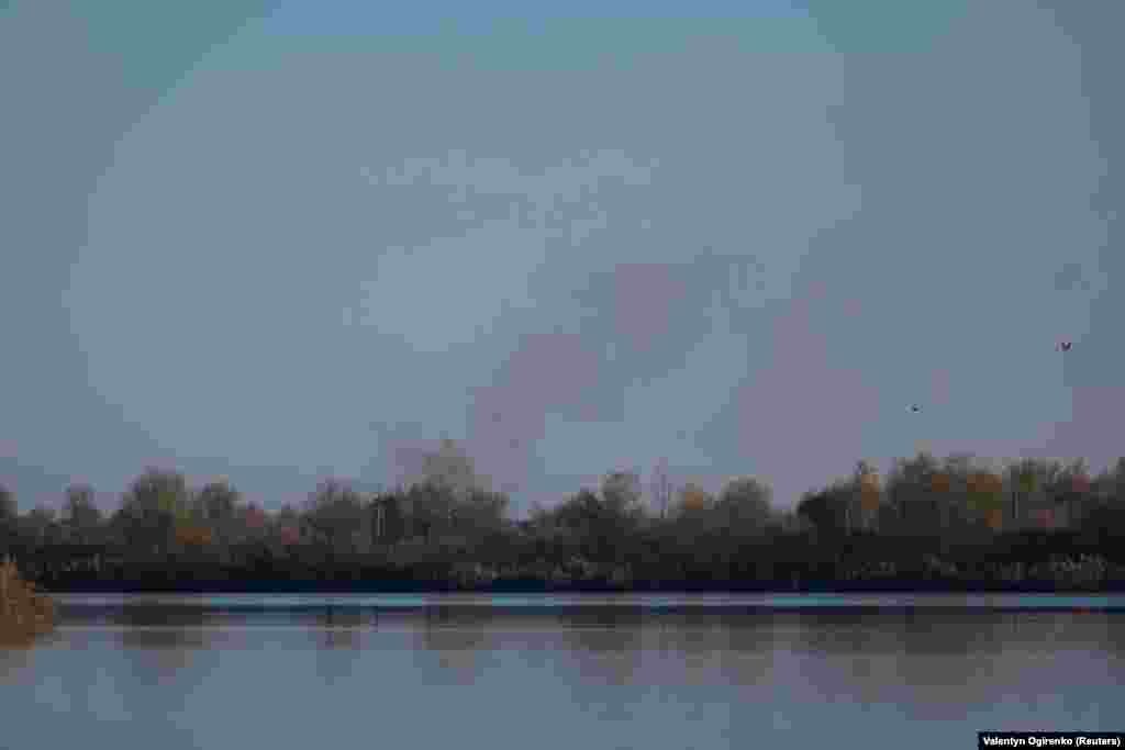 Вид на разрушенный Антоновский мост через Днепр, взорванный российскими войсками после выхода из Херсона на левобережье Украины. Ранее мост был поврежден украинскими военными. Отступление России из Херсона знаменует еще одну победу для Киева, поскольку линии фронта на поле боя продолжают перекраиваться.