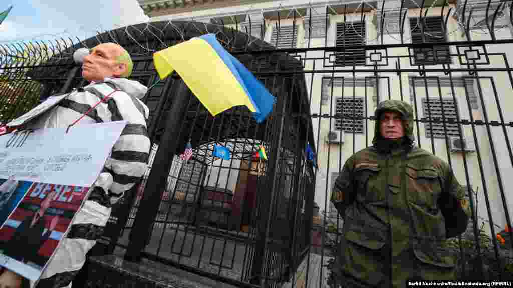Во время акции бывшие политзаключенные – украинцы и крымские татары, которые побывали в заключении в России и аннексированном Крыму – дали показания в импровизированном «Гаагском суде». Таким образом активисты решили «поздравить» с днем рождения президента России.