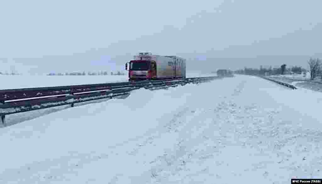 В Крыму с вечера 18 февраля начался сильный снегопад, по данным Росавтодора за ночь на полуострове выпало 27 мм снега. Из-за непогоды от Керчи оказались отрезанными практически все близлежащие села. Транспортное сообщение с ними прервано.