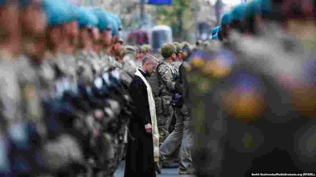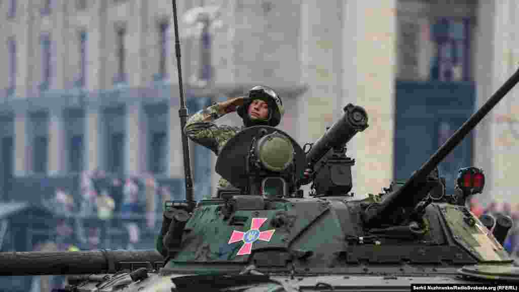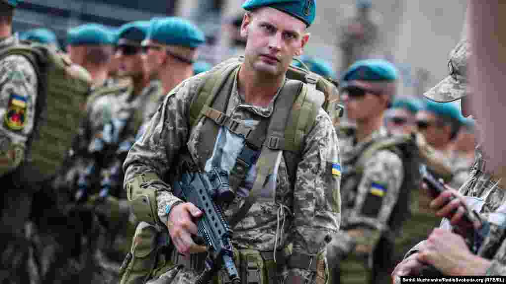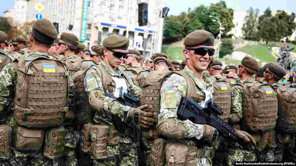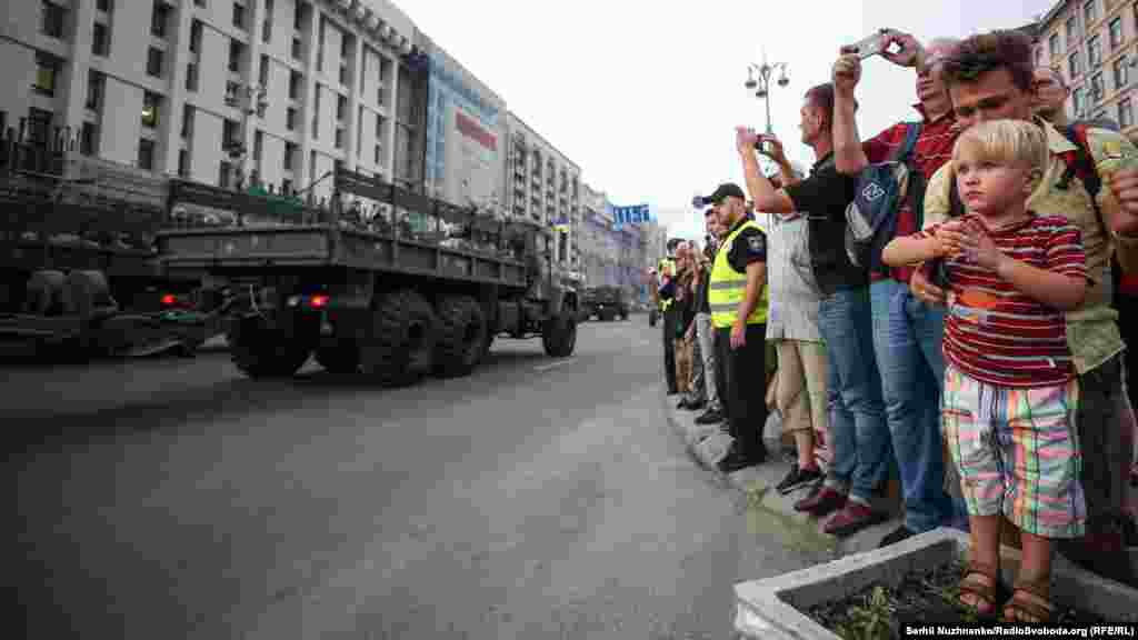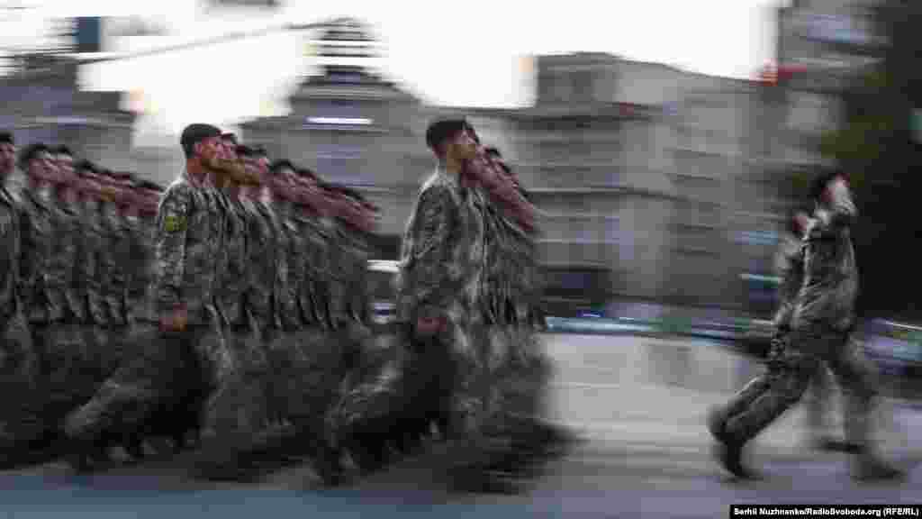 На главной улице украинской столицы – Крещатике – состоялась вечерняя тренировка личного состава, который традиционно привлекают к военному параду ко Дню Независимости Украины. В этом году страна будет праздновать 27-ю годовщину.