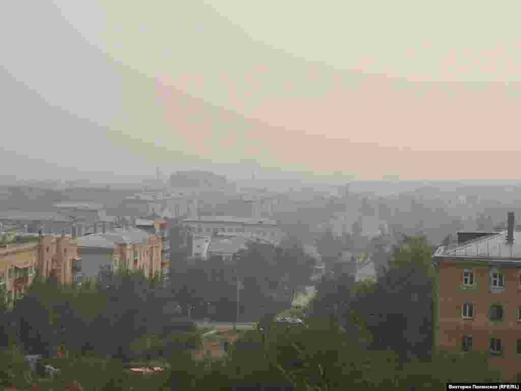Дымка от пожаров в городе Усть-Кут – дым заволок многие города Сибири