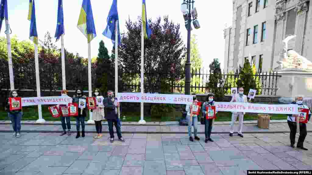 Родственники незаконно удерживаемых в тюрьмах России и аннексированного Крыма украинцев 21 мая провели акцию, требуя подробностей о возможном обмене между Россией и Украиной. Акция под названием «Господин президент, поговорите с нами» собрала под Офисом президента Украины полтора десятка людей. В руках они держали фотографии оказавшихся за решеткой украинцев, а также баннер с надписью «Господин президент! Хватит обещаний – действуйте! Освободите наших родственников!»