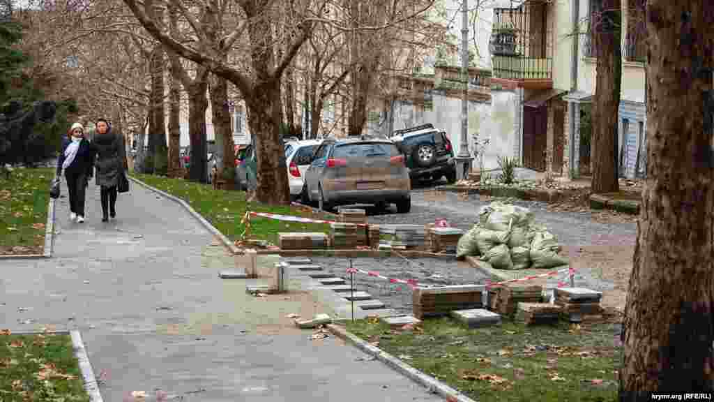 Работы по реконструкции сквера возле Владимирского собора в Севастополе почти завершили. Корреспонденты Крым.Реалии застали нескольких рабочих, заканчивающих отделку дорожных «карманов» на подъездах к скверу.