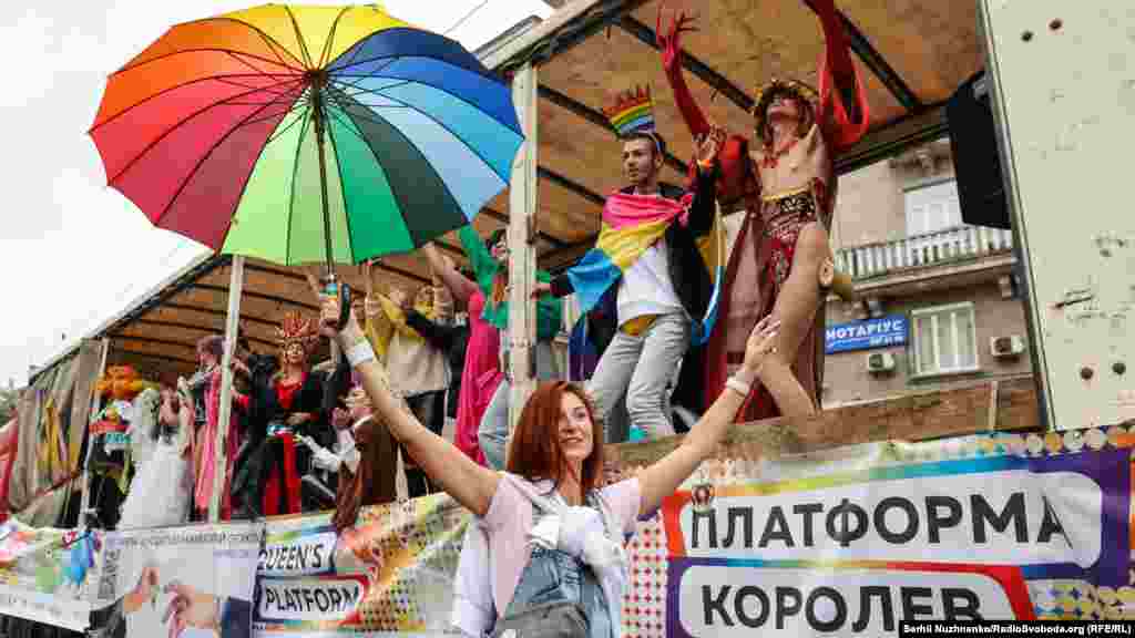 В шествии приняли участие drag queens (артисты мужского пола, которые переодеваются в женскую одежду – КР). Они ехали на отдельной платформе