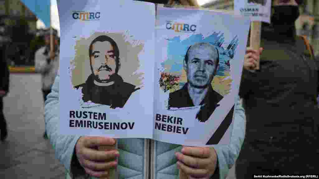 Участники акции принесли с собой портреты арестованных и осужденных российскими судами крымских татар.